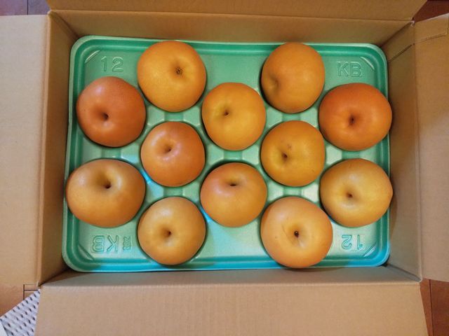 ふるさと納税のお礼の梨が届きました。みずみずしくて美味しいです。今日は《いぬ》がゴマ団子を作ってくれました。