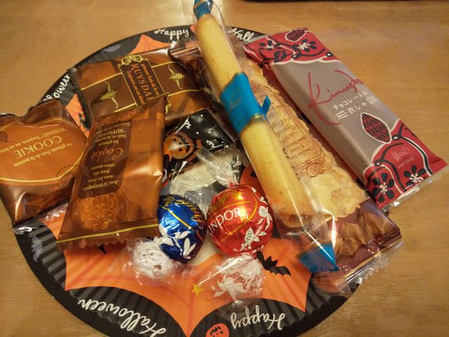 月末なので会社でお菓子をもらいました。ハロウィンが近いのでお菓子を配っている人もいました。