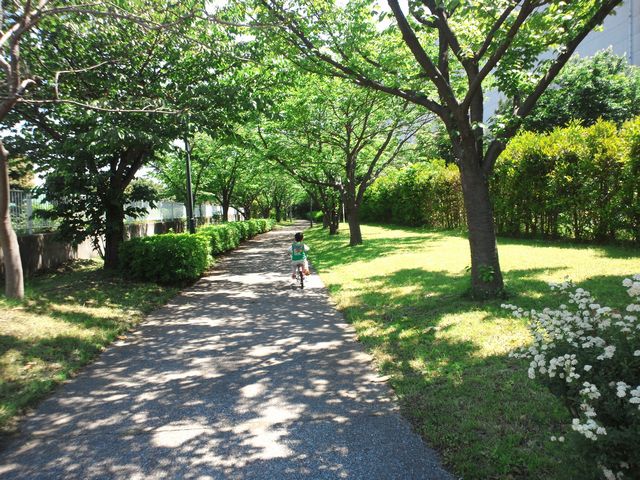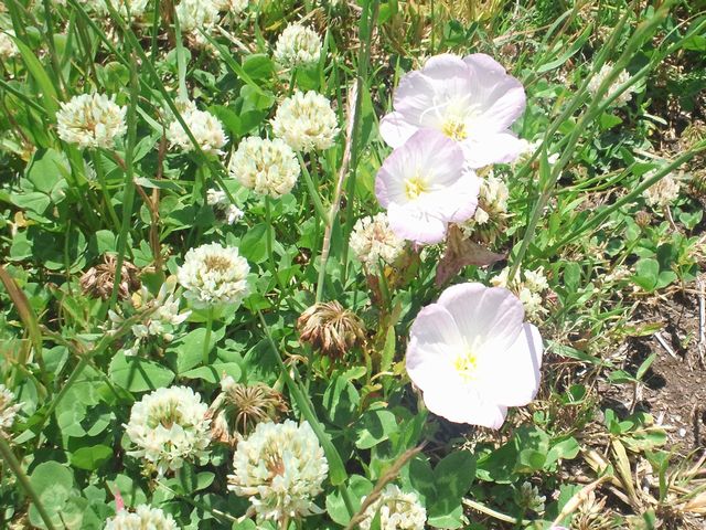 《とり》の自転車は家から持って行き、《たつ》はマリエンで自転車を借りました。マリエンから東扇島東公園まではすぐ横を高速道路が走っているとは思えないくらい気持ちいいサイクリングコースです。東扇島東公園ではシロツメクサが満開できれいでした。シロツメクサの横で咲いているピンクの花はヒルザキツキミソウかな?