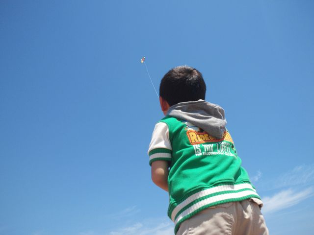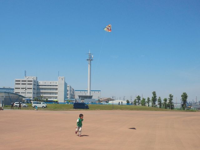 《とり》の希望で午前中は東扇島東公園に行ってきました。《とり》と《いぬ》が昨日公園でもめたので、今日は《とり》だけを連れていきました。《とり》の希望で凧上げをしました。お正月に買った時には持ってくるのを忘れてしまったので、東扇島東公園での凧上げは初めてです。海沿いなので風が強くてよく上がりました。凧糸が長ければ、どこまでも高くあげれそうでした。《たつ》が高くまで上げて代わってあげましたが、《とり》は凧糸を短くして自分で走り回って凧を上げる方が楽しかったようで、走り回っていました。