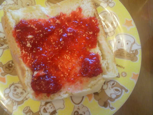《へび》のお母さんがイチゴジャムを作って送ってくれました。とてもおいしいです。《とり》も《いぬ》も毎朝たっぷり塗って食べています。