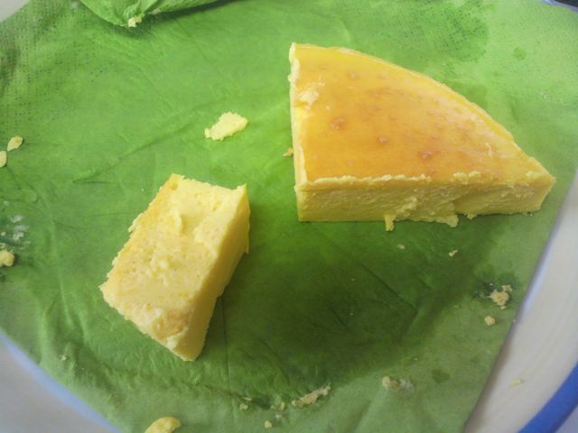 チーズケーキ 食べ物 2011.05.23(月) 《へび》がおやつにかぼちゃのチーズケーキを作りました。出来上がってから、わずか15分後には、ほとんどなくなってしまいました。《たつ》はほんのちょっとしか食べれませんでしたが、おいしかったです。出来たても食べてみたかったです。