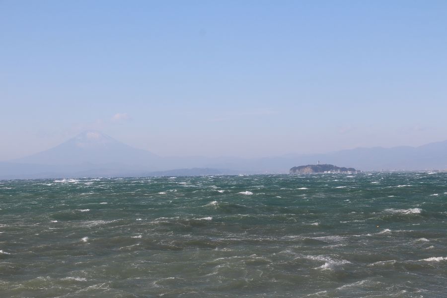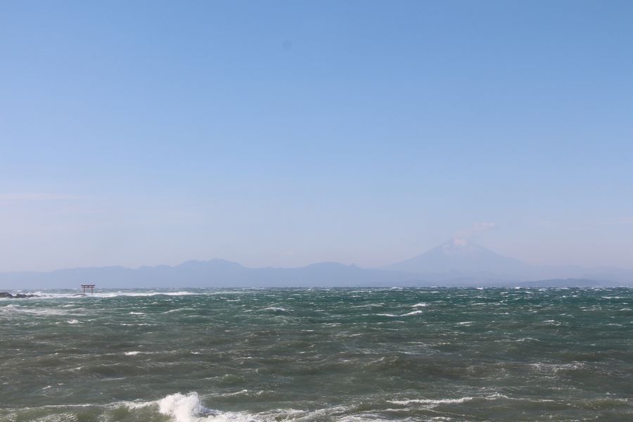 それから森戸大明神にお参りに行きました。風が強くて駐車場まで波がきていました。海は荒れていましたが、富士山も見えました。近くの葉山しおさい公園に寄ってから三崎港へ買い物へ行きました。