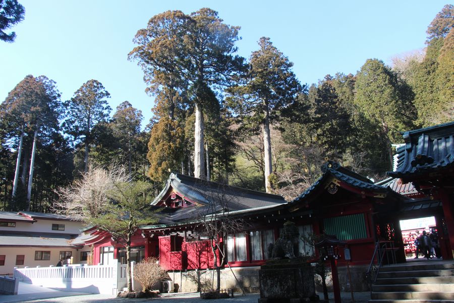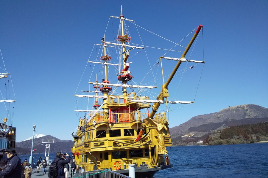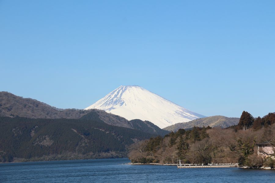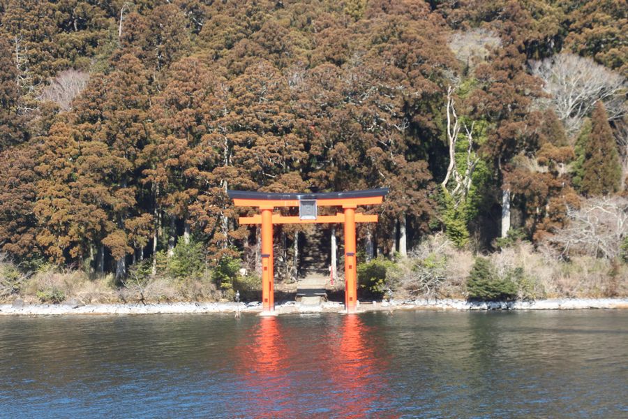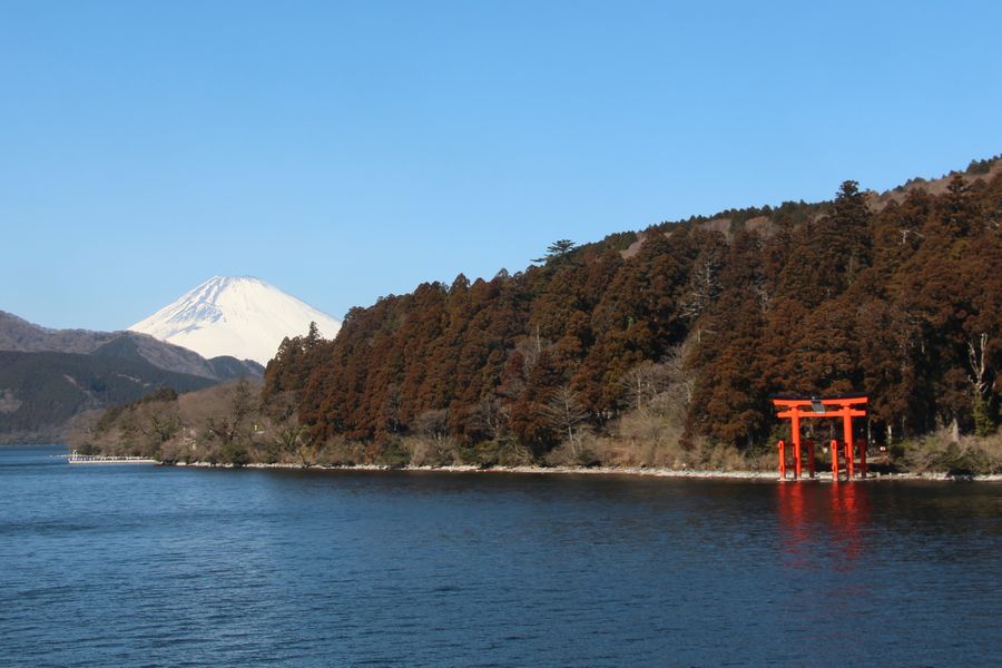 雲一つない快晴で新湘南バイパスからも富士山がきれいに見えていました。まずは芦ノ湖畔の駐車場に停めて、駒形神社へ歩いてお参りに行きました。御朱印を書いていただいている間にお茶をいただき体が温まりました。続いて芦ノ湖を海賊船に乗って一周しました。箱根神社の鳥居や富士山がきれいに見えていました。