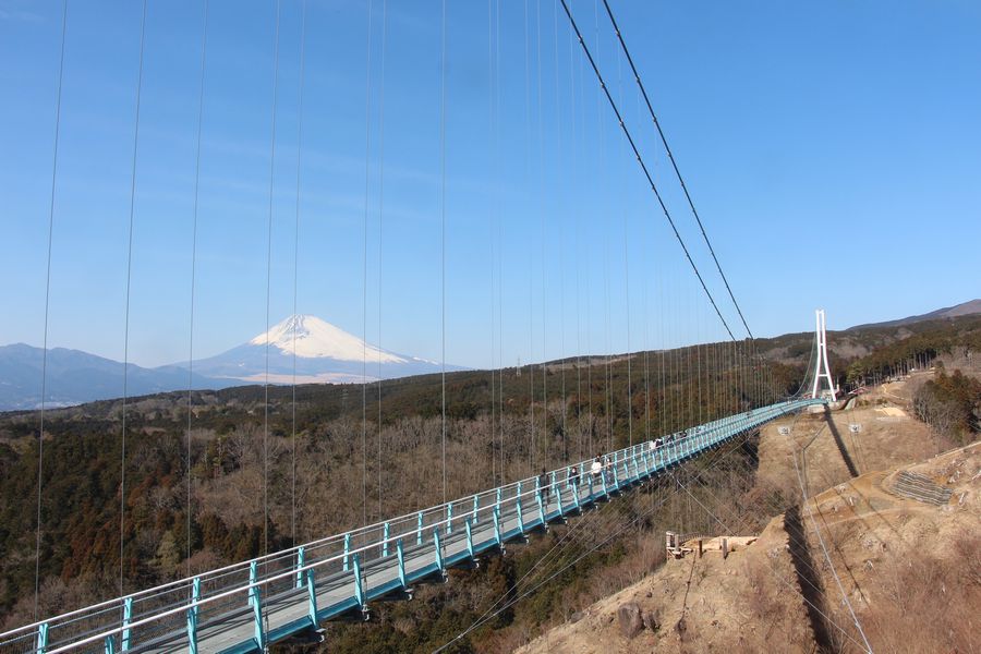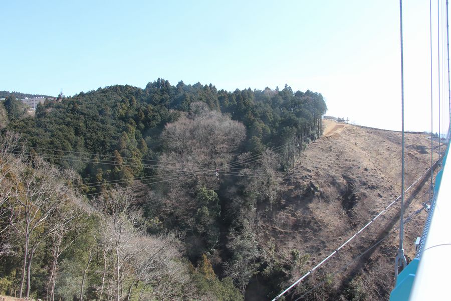 次に三島スカイウォークへ行きました。富士山がきれいに見えていました。吊り橋は少しだけ揺れます。吊り橋のとなりではロングジップスライドを楽しんでいる人がいました。遠く駿河湾まで見渡せました。