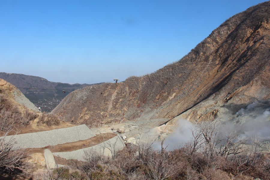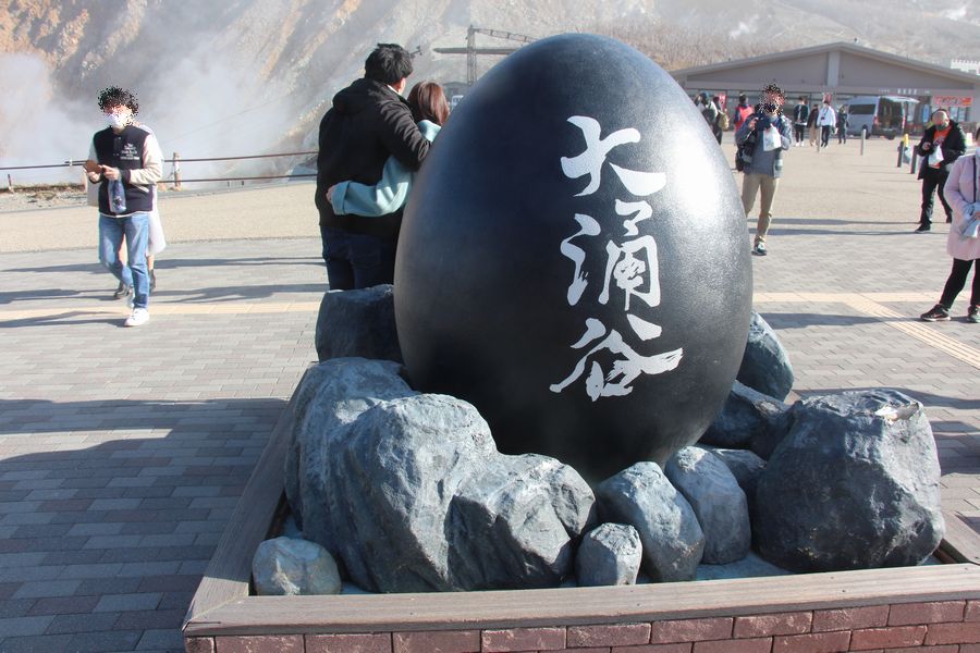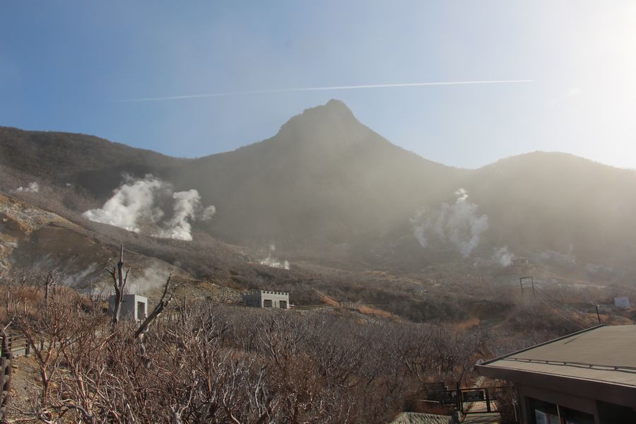 次に箱根神社へお参りに行ってから大涌谷へ行きました。硫黄の匂いが充満していました。ここでも富士山がきれいに見えていました。
