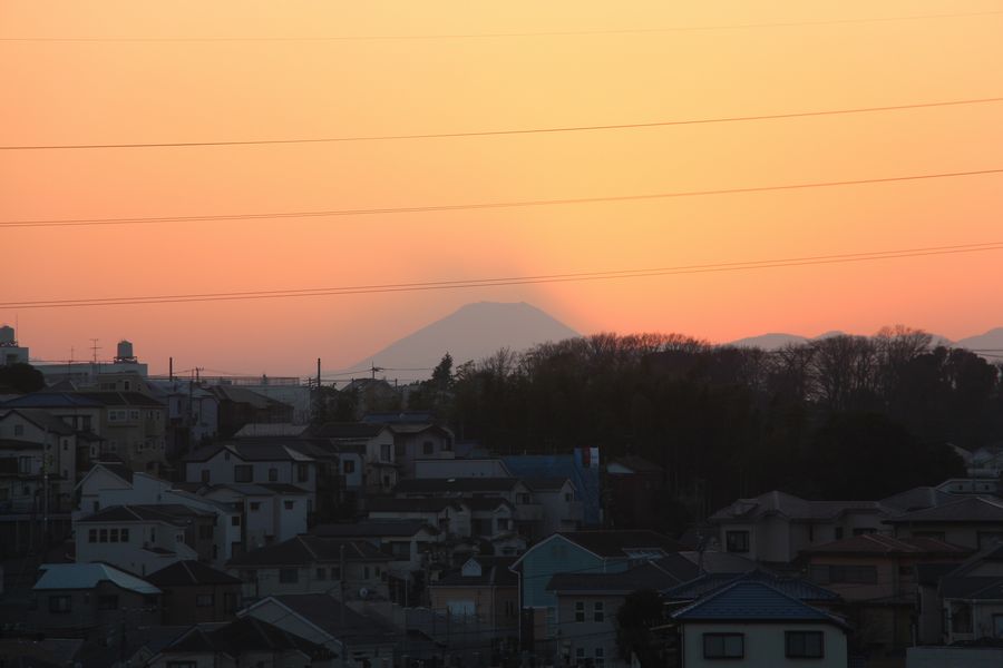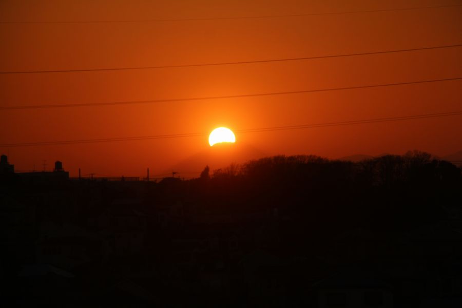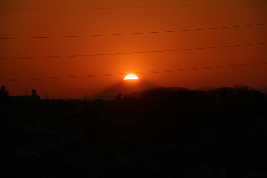 ダイヤモンド富士 その他 2021.02.21(日) 今日は自宅近辺でダイヤモンド富士が見える日です。日中は気温が高くて空気が澄んでおらず富士山は見えていませんでしたが、夕日が富士山に沈むと太陽の影になって見えてきました。年に2回見れるはずなので、空気が澄んでいる時に見てみたいです。