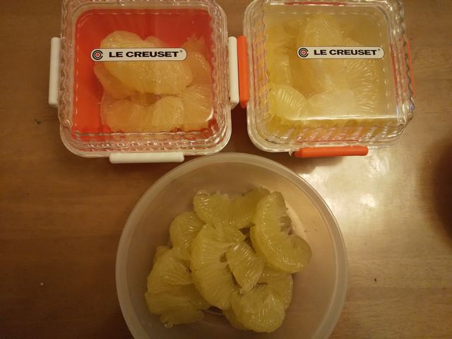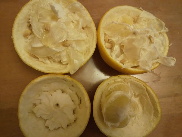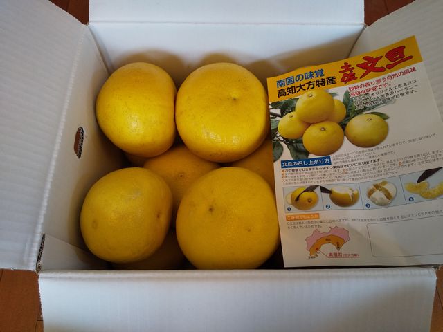 ふるさと納税のお礼の文旦が届きました。《いぬ》が自分の分を必死にむいていました。