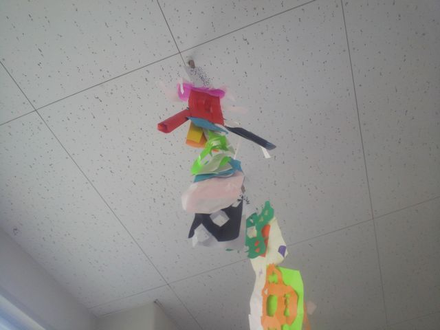 《とり》の参観日でした。4時間授業があり、国語、体育、生活、算数の授業でした。国語の時間は、班ごとに発表していました。《とり》も大きな声で発表出来ていました。体育の時間は鬼ごっこをしたり、マット運動をしていました。生活の時間は、学校探検で書いた絵を1人1人クイズ形式で発表していました。みんなとても楽しそうでした。算数の時間は、あわせていくつという問題で足し算の基礎を習っていました。《いぬ》も一緒に行きましたが、《いぬ》は体育の時間が終わってから体育館でひとりで楽しそうにマット運動をしていました。写真は禁止ですが、工作の時間に作った作品が廊下に飾ってあったので写真に撮りました。