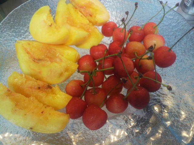 先日いただいた黄桃は今日でラストです。さくらんぼももうすぐ食べ終わりそうです。