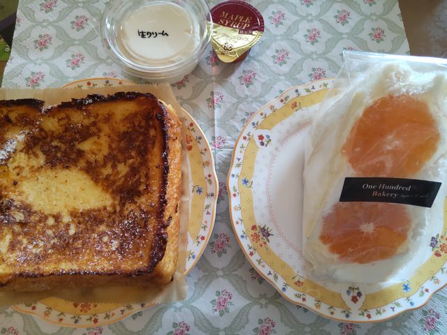 買物 お買い物 2021.10.02(土) 《とり》が新しくオープンしたパン屋さんでフレンチトーストとフルーツサンドを買ってきてくれました。そして、先日注文をしたフルネーム入りのイヤホンと置くだけの充電器が届いたようです。