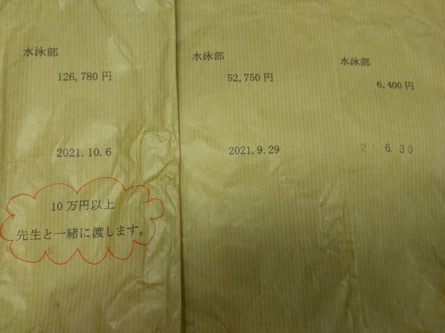 返金 高校 2021.10.13(水) 《へび》が1学期から立替えていたお金がやっと戻ってきました。会計の子が申請をしたまま取りに行かないので最後の申請は《とり》にやってもらいました。2学期になってから《とり》が立替えたお金は戻ってきたのですが《へび》の分は会計の子の机の中に領収書が埋もれていたそうです。夏休みに校舎が新しくなって引っ越しをして机も新しくなったので領収書が見つかってよかったです。