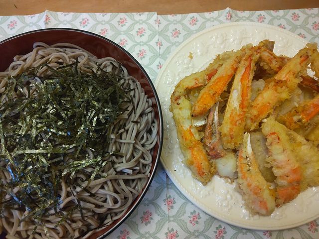 今年の年越しそばはカニの天ぷらと一緒に食べました。