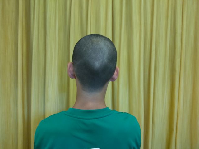 《とり》が運動会で優勝できなかったので坊主にしました。3ミリです。クラスの半数以上が坊主のようです。授業中に切りに行く子もいたようです。