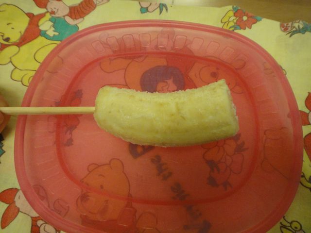 バナナアイス 食べ物 2011.07.05(火) 《いぬ》がバナナに割り箸をさしてバナナアイスを作ってくれました。自分が作ったとみんなに自慢していました。 ちなみに暑くなってきて疲れるようで、幼稚園から帰ってきたら熟睡しています。