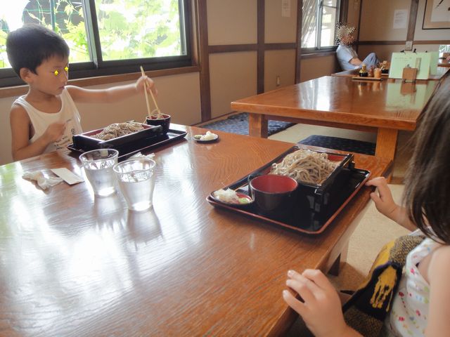 八ヶ岳ウェスタン牧場の次は、県立まきば牧場に行きました。かなり標高が高いので20度くらいしかなく《たつ》と《へび》は寒かったのですが、《とり》と《いぬ》は走り回って暑そうでした。大自然の中でおやつを食べて満足そうでした。八ヶ岳ウェスタン牧場にはいなかった牛もいて、《とり》も《いぬ》もなぜか大喜びでした。右側の写真の遠くの方に牛がいます。夜ご飯は小作でほうとうを食べました。豚肉ほうとう、ちゃんこほうとう、猪肉の串焼きを食べました。《とり》と《いぬ》には取り分けですが、けっこうボリュームがあったので全員おなかいっぱいになりました。やさいたっぷりで、おいしかったです。今日は岐阜県の土岐で一泊して、もう少し寄り道してから大阪に行く予定です。