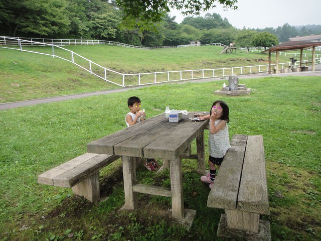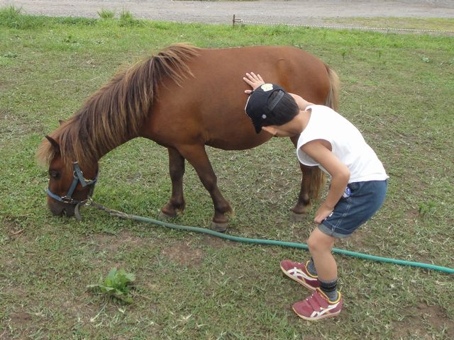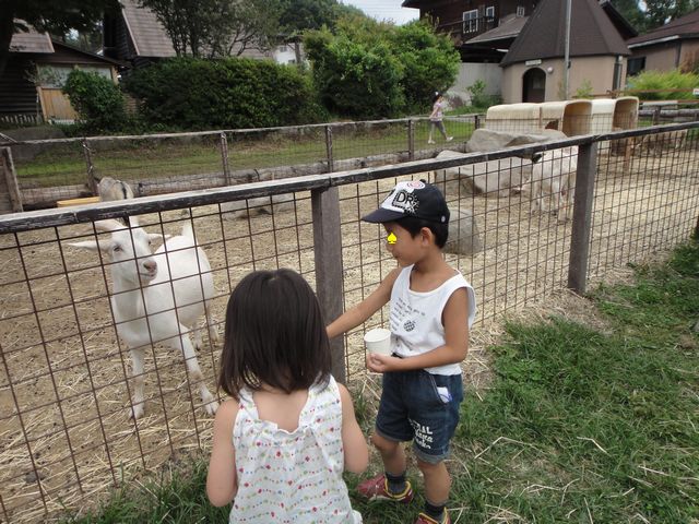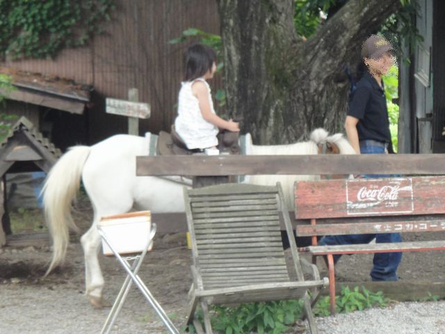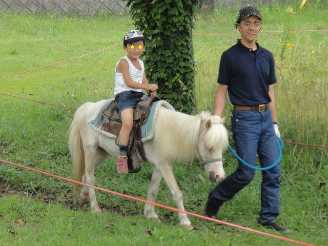 道の駅に寄ってからは八ヶ岳ウェスタン牧場に行きました。《とり》も《いぬ》もほとんどこわがることなくヤギ・ポニー・羊に寄って行きます。そして、動物のえさを買って、餌やりを思う存分楽しんでいました。餌やりが終わってからはポニーに乗りました。《とり》も《いぬ》も何度も乗ったことがあるのでかなりリラックスした様子で乗っていました。