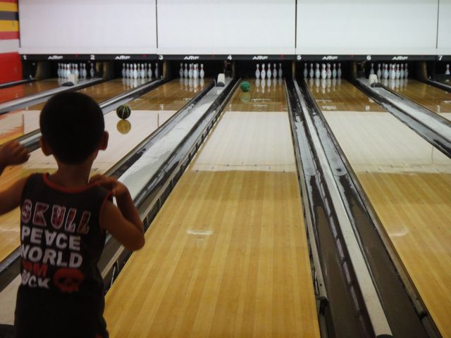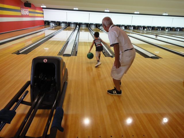 じぃじとばぁばと一緒にボウリングに行ってきました。《とり》が何ヶ月も前から何度もボウリングをしたいと言ったので念願のボウリングです。ボールは5本指で持つお子様用の軽量ボールです。2レーンを使い、一つはガターなしにしてもらいました。《とり》も《いぬ》もボウリングは初めてですが、ガターなしだとピンを倒せるので、とても楽しんでいました。スコアは忘れてしまいましたが、《とり》と《いぬ》は60点ぐらいだったと思います。《たつ》も7年ぶりのボウリングを楽しみました。また機会があれば行きたいと思います。