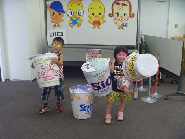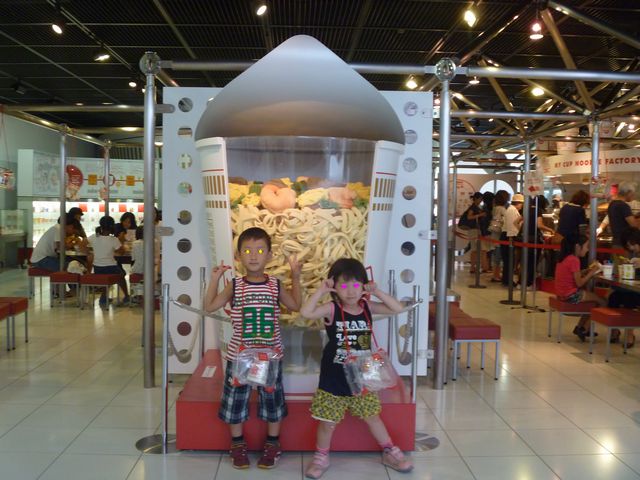 インスタントラーメン発明記念館 お出かけ 2011.08.01(月) 《たつ》と《へび》がおみやげを買いに行っている間、《とり》と《いぬ》はじぃじとばぁばにインスタントラーメン発明記念館に連れて行ってもらいました。自分でカップをデザインして、スープや具を選んで自分だけのカップヌードルを作ったようです。とても楽しかったと言っていました。