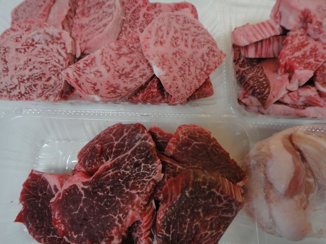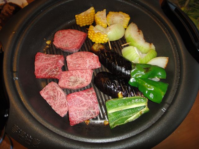 焼肉 食べ物 2011.08.02(火) 大阪の焼肉屋さんで買ってきたお肉で焼肉をしました。どれも柔らかくておいしかったです。一緒に焼いた野菜は29日に《とり》と《いぬ》がもぎ取り体験で採ってきた野菜です。自分で採った野菜なので、よく食べていました。
