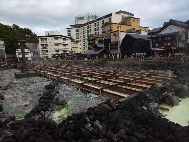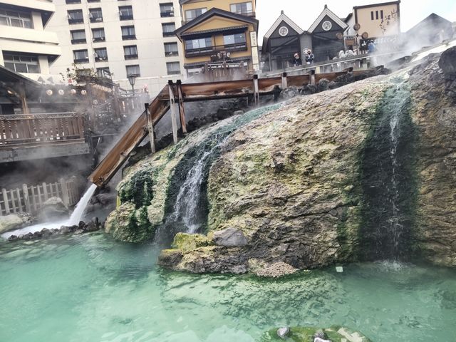 草津温泉の湯畑に行きました。湯もみショーを見て、大滝の湯で温泉につかりました。温度の違う湯船を巡る「合わせ湯」にも入りましたが、4つ目は熱かったです。