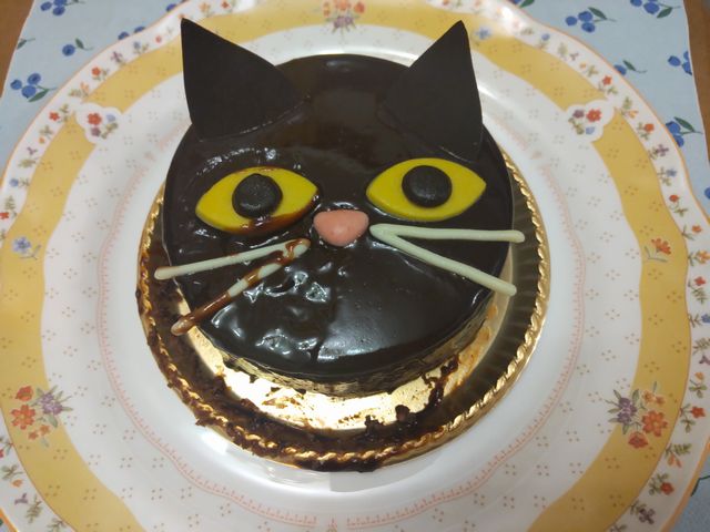 ハロウィンなので予約をしていたケーキを取りに行きました。箱が揺れてしまい少し崩れてしまいました。