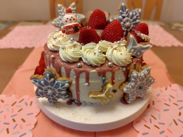 《いぬ》がケーキを作ってくれました。クッキーとマカロンは前日に作っていました。美味しかったです。