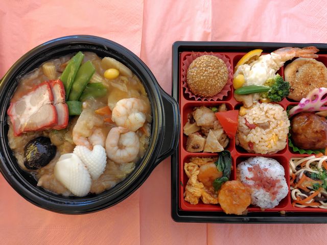 左のお弁当は あんかけ丼かなぁ❓