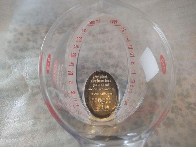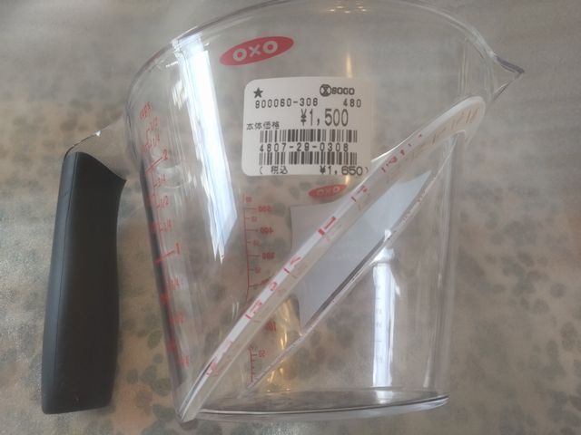 この計量カップ 上からでも メモリが見えるんやね\(◎o◎)/!