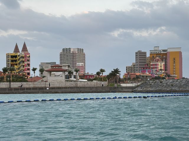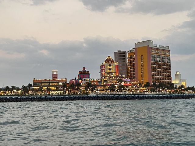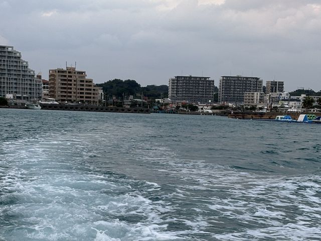 アメリカンビレッジを洋上から見れる貸し切りクルーズに参加しました。波が高くて揺れましたが、楽しかったです。