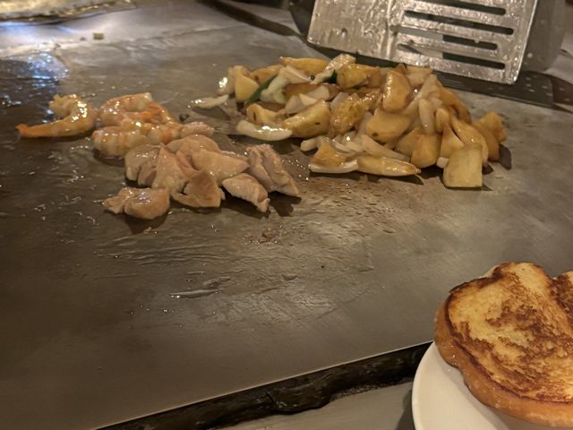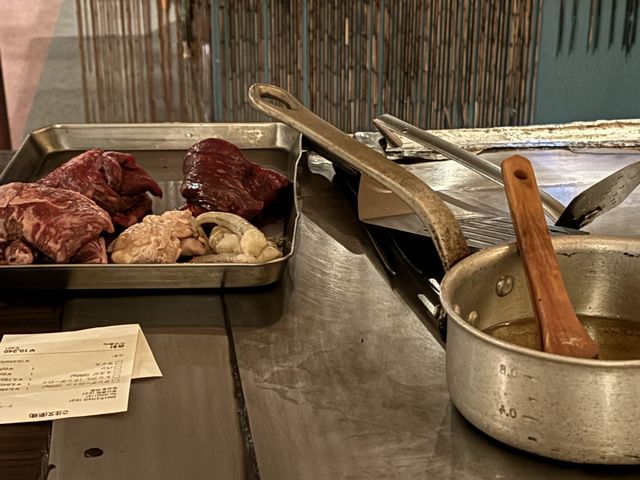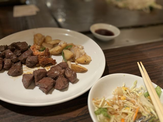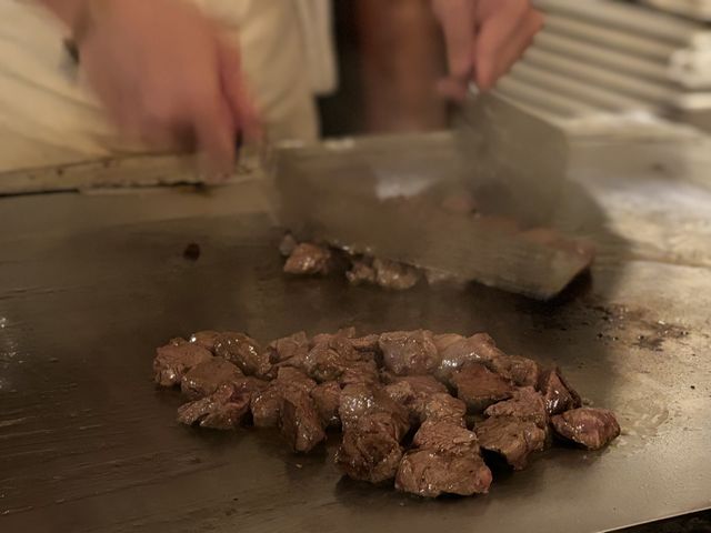 夜ご飯はステーキです。目の前でシェフが焼いてくれます。いろいろな部位を食べましたが、どれも美味しかったです。