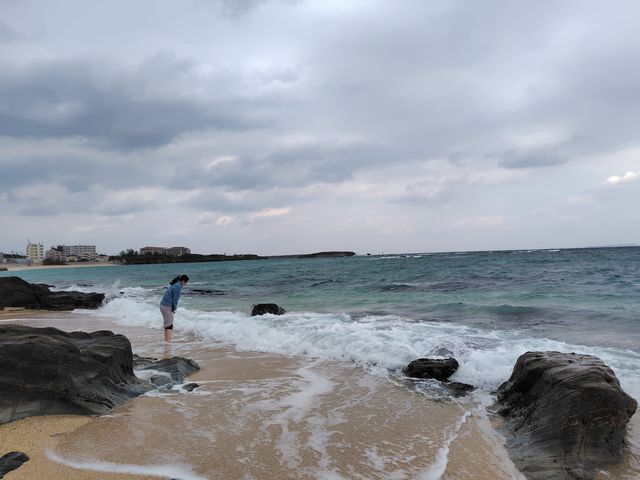 御菓子御殿でお土産を見て、その足でお店の裏の海岸に降りて、少し海に入りました。海はほどよく暖かくて寒くはないです。お昼ご飯はなかむらそばで沖縄そばを食べました。お店の前の海岸もきれいで、デザートには紅芋のソフトクリームを食べました。