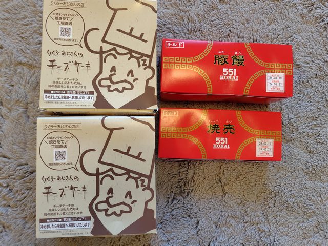 《とり》が帰省していたので551等を買ってきてくれました。日中は《いぬ》がお昼御飯用にお惣菜を買いに行ってくれました。