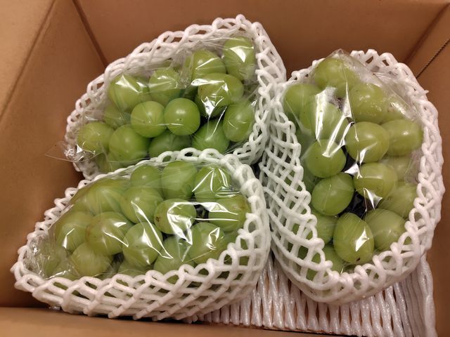 ふるさと納税のお礼のシャインマスカットが届きました。甘くて美味しいです。《とり》が運転の練習でドーナツを買ってきてくれました。
