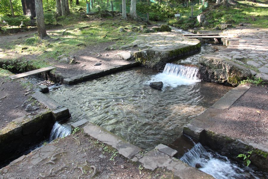 ゴルフの後は鉄道最高地点を見に行きました。ちょうど列車が通過していきました。その後は三分一湧水を見に行きました。富士山もうっすらと見えていました。