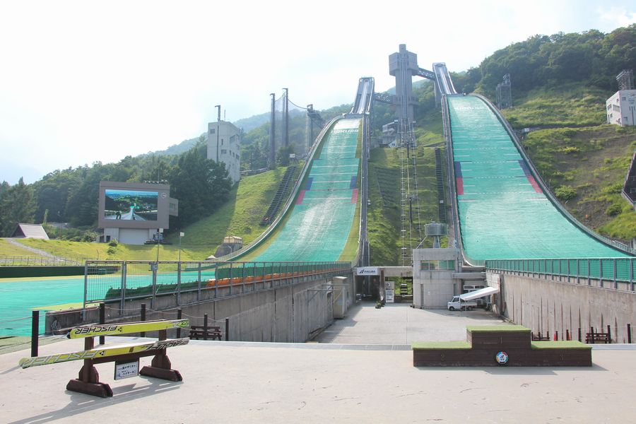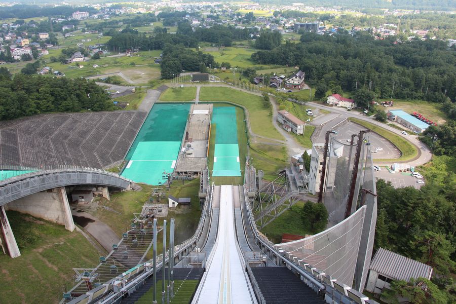 次に白馬ジャンプ競技場へ行きました。ラージヒル、ノーマルヒルの展望台から見ると、怖いぐらいの高さでした。