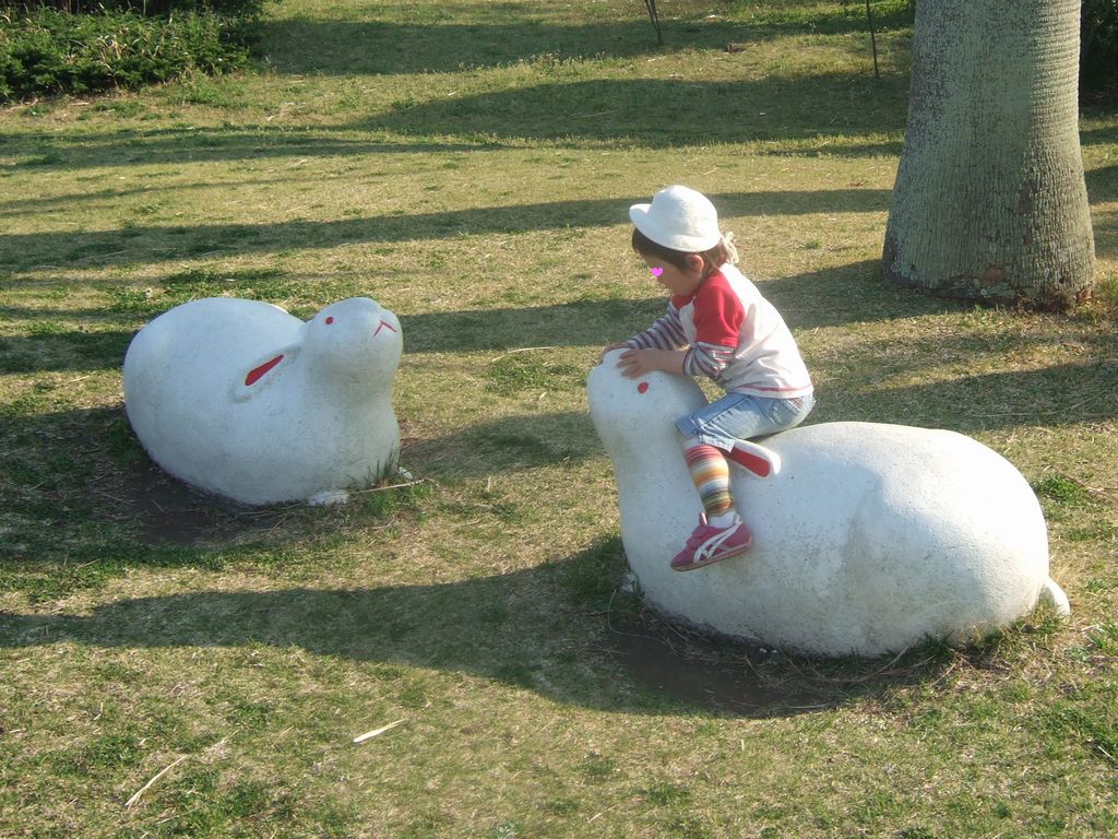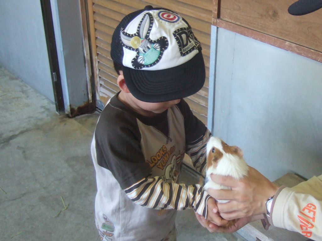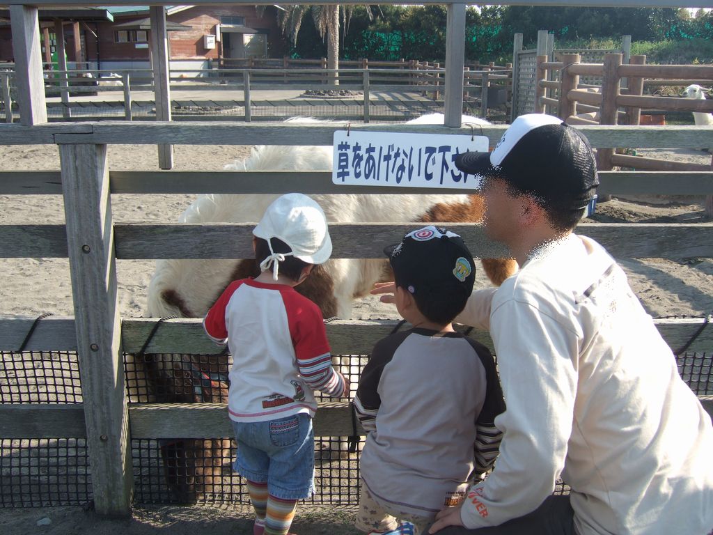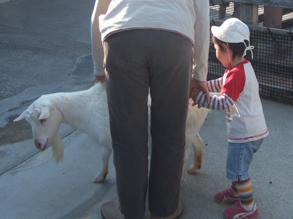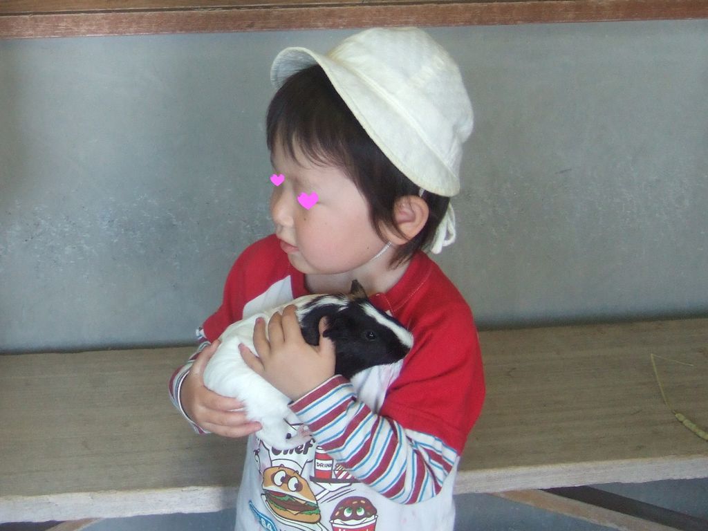 遊具でしばらく遊ばせてから、動物広場に行きました。ポニーややぎを触ることができる所では、《いぬ》は怖がることなく、普通に触ってましたが、《とり》は怖がりながらも、恐る恐る触ってました。モルモットを抱っこできる所でも、《いぬ》は怖がることなく、普通に抱っこしてました。《とり》は抱っこというよりは、ビビりながら触ってました。