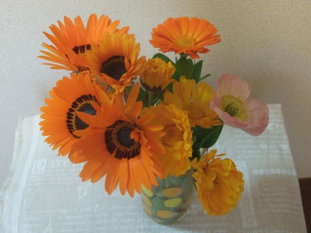 道の駅の向かいにあるお花畑で花摘みもしました。《とり》がお花を選んで切ってくれました。《いぬ》はお花畑の方にポピーをもらって大事そうにしてました。