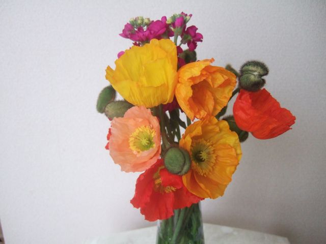 花瓶に飾っておいたお花は、次の日には写真のように咲き始めました。きれいですね。