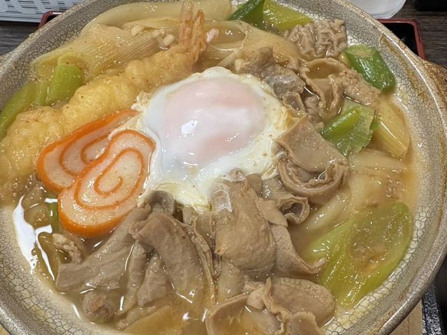 富山の煮込みうどんて エビ天も 入ってるんや\(◎o◎)/!