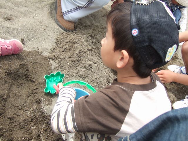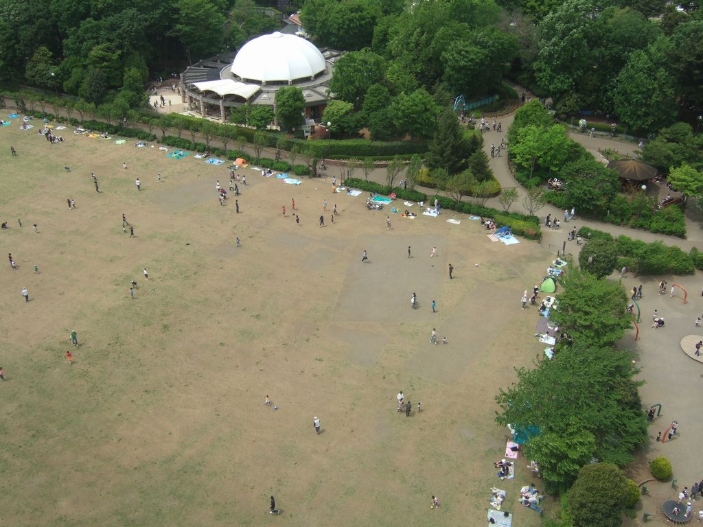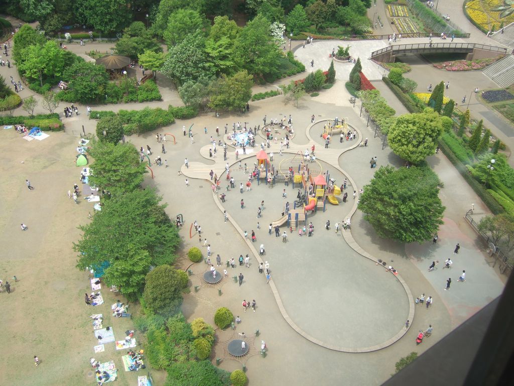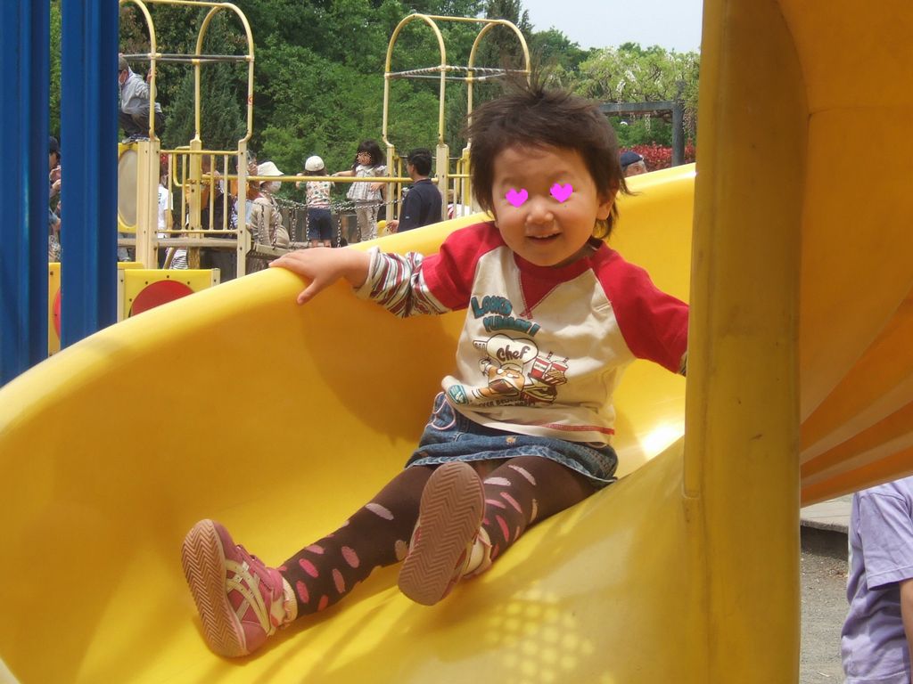 公園に着いて、最初に行ったのは「子どもの広場」です。展望台から見ると、足の形をしています。ここでは、《とり》も《いぬ》も遊具でたくさん遊んでいました。ゴールデンウィークということもあり、結構な人がいるのですが、あんまり気にせず一緒になって遊んでいました。遊具が飽きてくると、今度は砂場で遊んでいました。家から持って行ったお砂場セットを使ってお団子を作ってました。