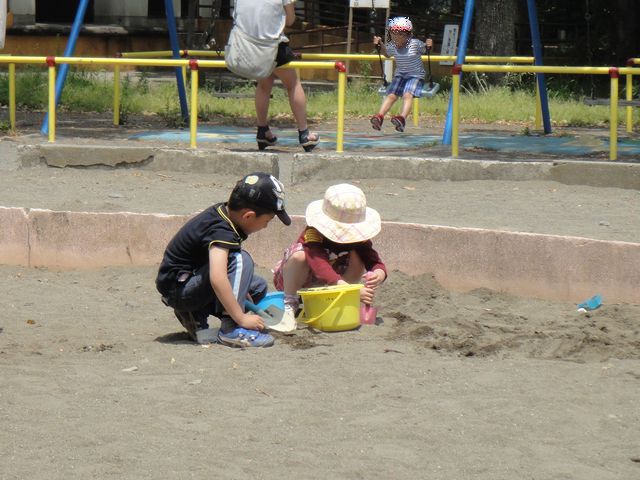 公園 子育て 2012.05.20(日) 《たつ》が車の修理に行っていたので、《へび》が《とり》と《いぬ》を連れて近くの公園に行ってきました。砂場で川を作って遊んでいましたが、水汲み係りの《いぬ》がバケツを持ったまま、途中で油を売るので何度も《とり》に怒られていました。