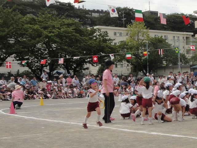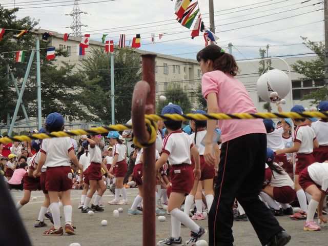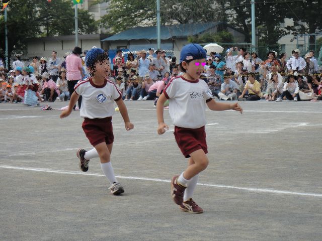 運動会 幼稚園 2012.09.29(土) 《いぬ》の幼稚園最後の運動会です。午前中は鈴わり、ダンス、障害物競走、リレーがありました。《いぬ》の希望で作ったサンドイッチ、炊き込みご飯、唐揚げ、エビフライのお弁当を食べました。午後からは組み体操がありました。午後からは夏のような暑さでした。《へび》は体調が悪く、午後の競技を見たら《とり》と一緒に先に帰宅しました。