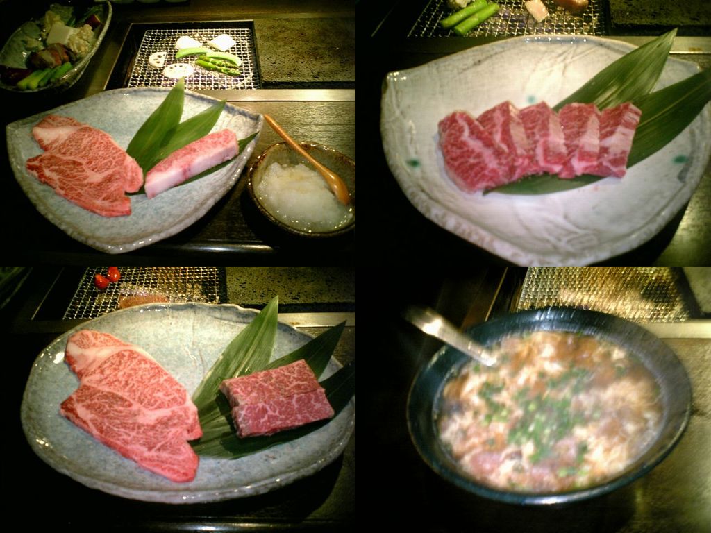 肉匠 おか元 お食事 2009.06.18(木) じぃじとばぁばに《とり》と《いぬ》を預けて、《たつ》と《へび》だけで「肉匠 おか元」さんへ焼肉を食べに行きました。大阪では結構有名なお店で、油が少ないお肉を焼くための溶岩石のプレートと、油が多いお肉を焼くための金網がテーブルには備え付けられています。ビールを飲みながらおいしいお肉をお腹いっぱいいただきました。最後は肉雑炊でしめました。焼き肉はおいしいですね。