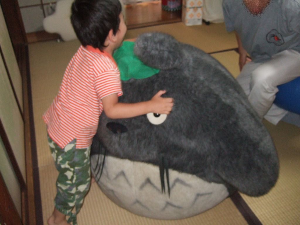 夕方からは《へび》の親戚の叔母さんのお家に遊びに行きました。《へび》の弟、いとことその子供のはるかちゃんも来ていました。はるかちゃんは《とり》と同学年で、《とり》と《いぬ》にとっては「はとこ」になります。夕方にお邪魔して、夜ご飯までは、《とり》も《いぬ》も叔母さんのお家にある大きいトトロのぬいぐるみで遊んでいました。