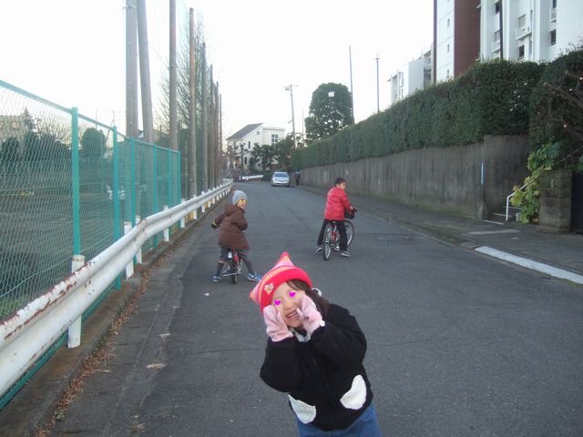 外遊び お友達 2013.01.11(金) 《とり》がお友達と自転車で遊ぶ約束をしてきたので、途中、様子を見に行ってきましたが、とても楽しそうで「およびでない」という感じでした。お天気がよくて富士山も見える場所なので、気持ちよくサイクリングができたようです。そして、グアムのお土産をいただきました。光る歯ブラシはさっそく使っていました。