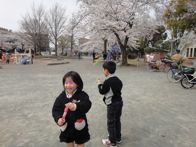 お花見 お出かけ 2013.03.23(土) お花見に行ってきました。桜が満開でとてもきれいでした。《とり》と《いぬ》はシャボン玉や砂場で楽しそうに遊んでいました。公園でお弁当を食べて、しばらく遊んでから一度帰宅をして渋谷に行きました。東急東横線が先週から地下駅になりましたが、地上駅の跡地がイベント会場になっていました。