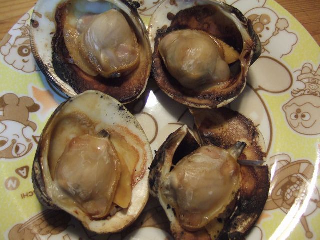 大アサリ 食べ物 2009.08.08(土) 前日の房総旅行で買った大アサリをさっそくいただきました。焼きたてを食べたかったので、《とり》と《いぬ》が寝た後に、《たつ》と《へび》でお酒を飲みながらささやかな宴会にしました。大アサリは焼いて少量のお酒とお醤油で味付けをしただけですが、とってもおいしかったです。できれば外でバーベキューで食べたいですね。