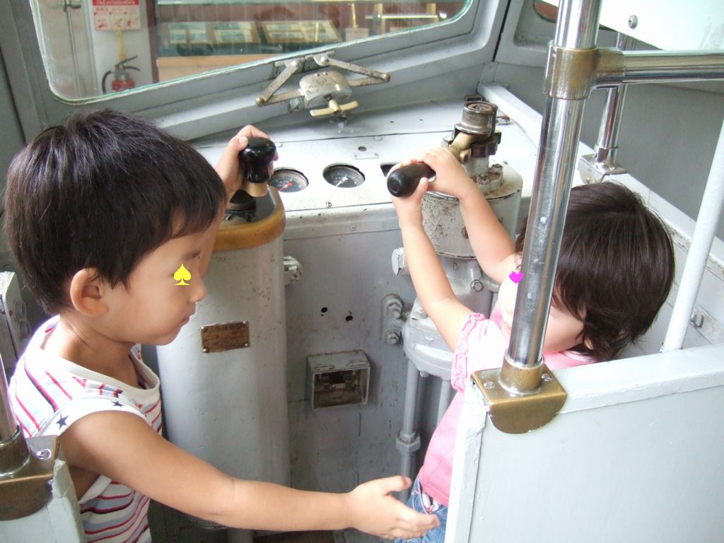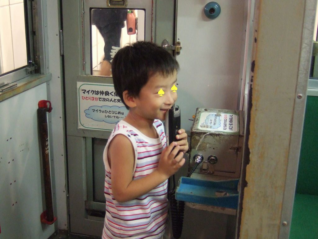 まずは、運転席でパンタグラフの上げ下げをしたり、マイクでアナウンスをしたりして楽しんでいました。電車のシミュレーターコーナーでは、小学生のお兄ちゃんが付きっきりで、《とり》と《いぬ》に運転の仕方を教えてくれました。