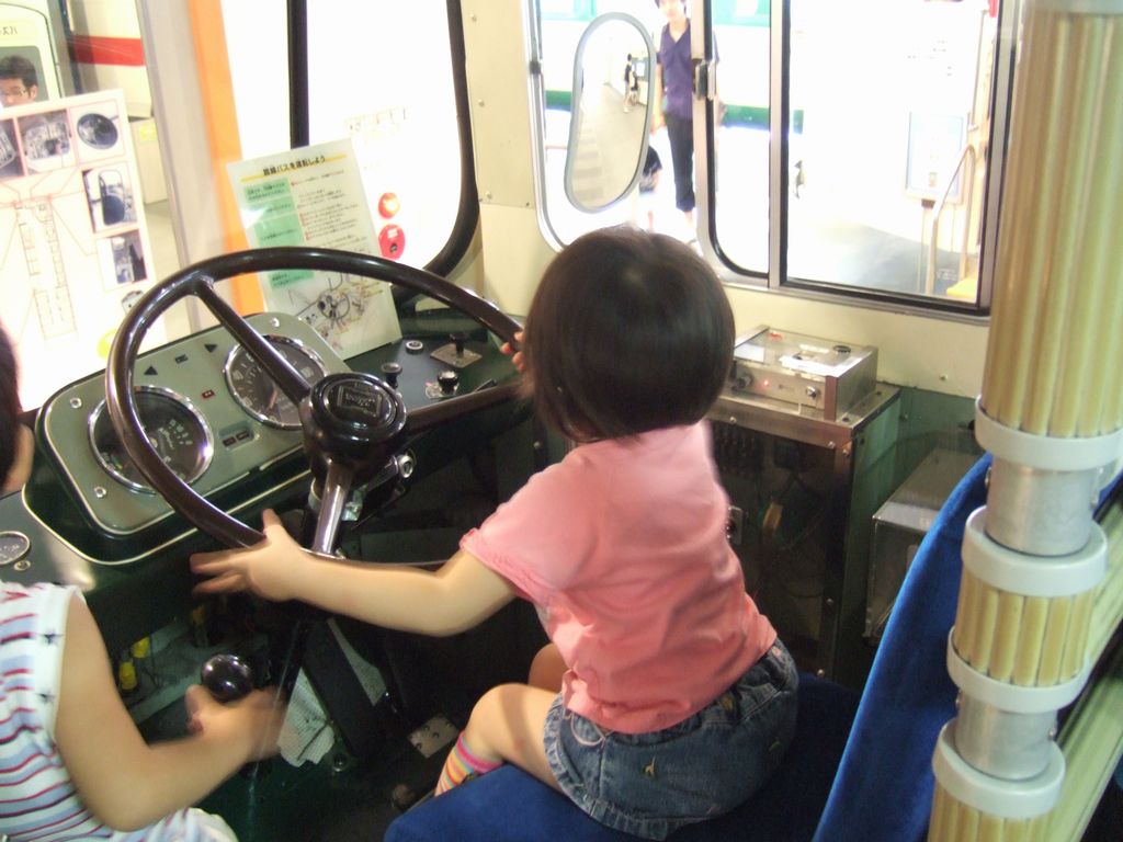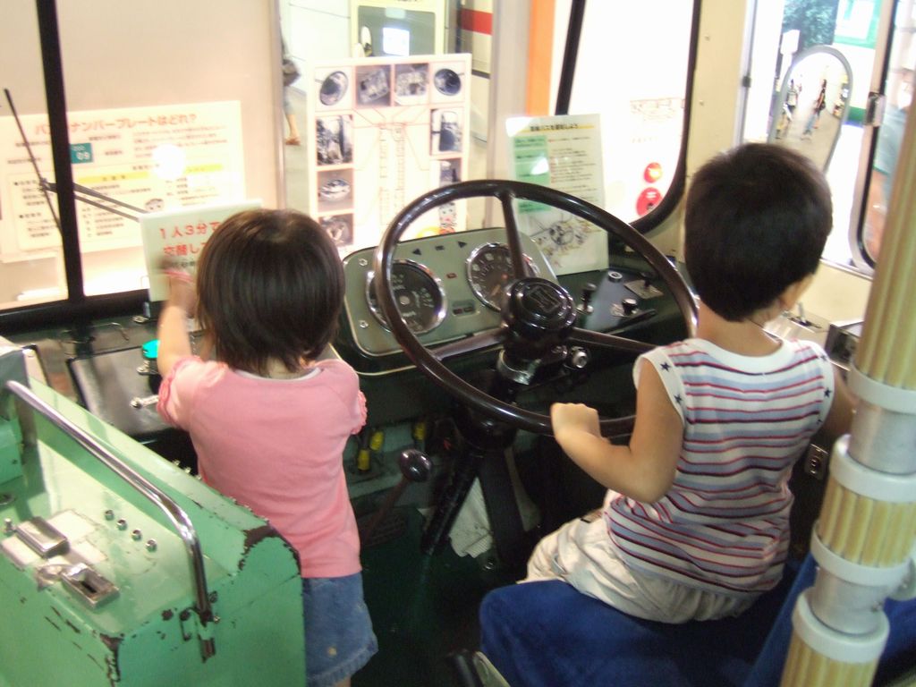 バスの運転席に座れるコーナーでは、後ろの扉の開閉、車内アナウンス、行き先の表示変更など色々できるので、とても楽しそうでした。その他にも色々なコーナーがありますが、一通り見て帰ってきました。二人ともとても楽しそうでした。